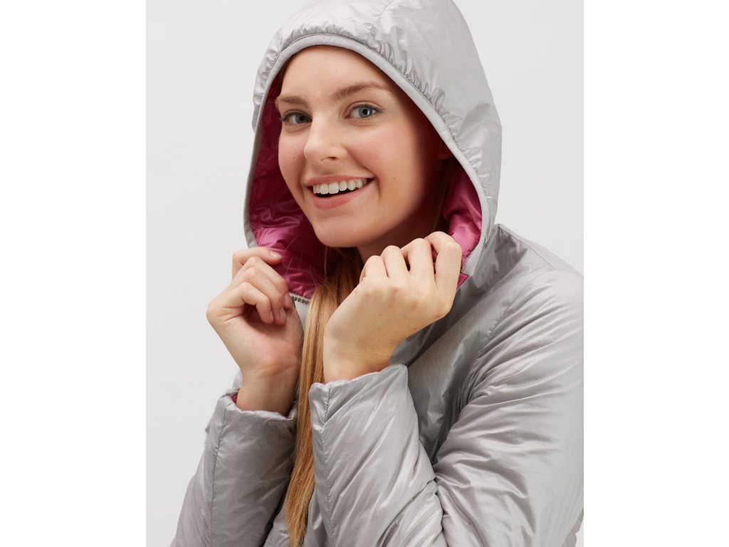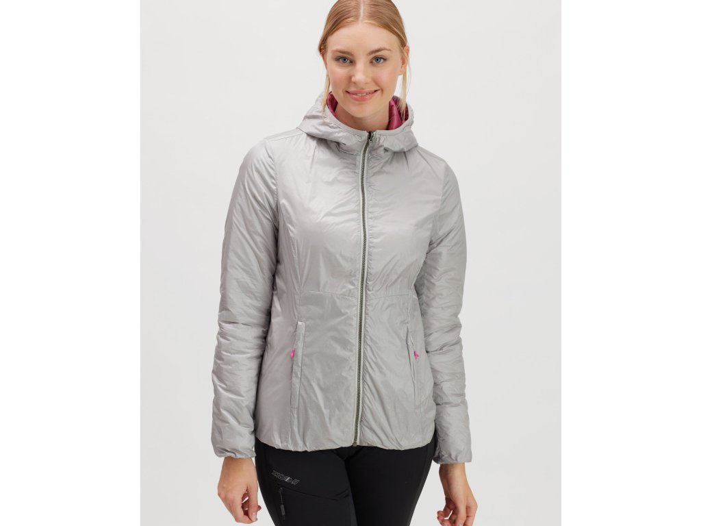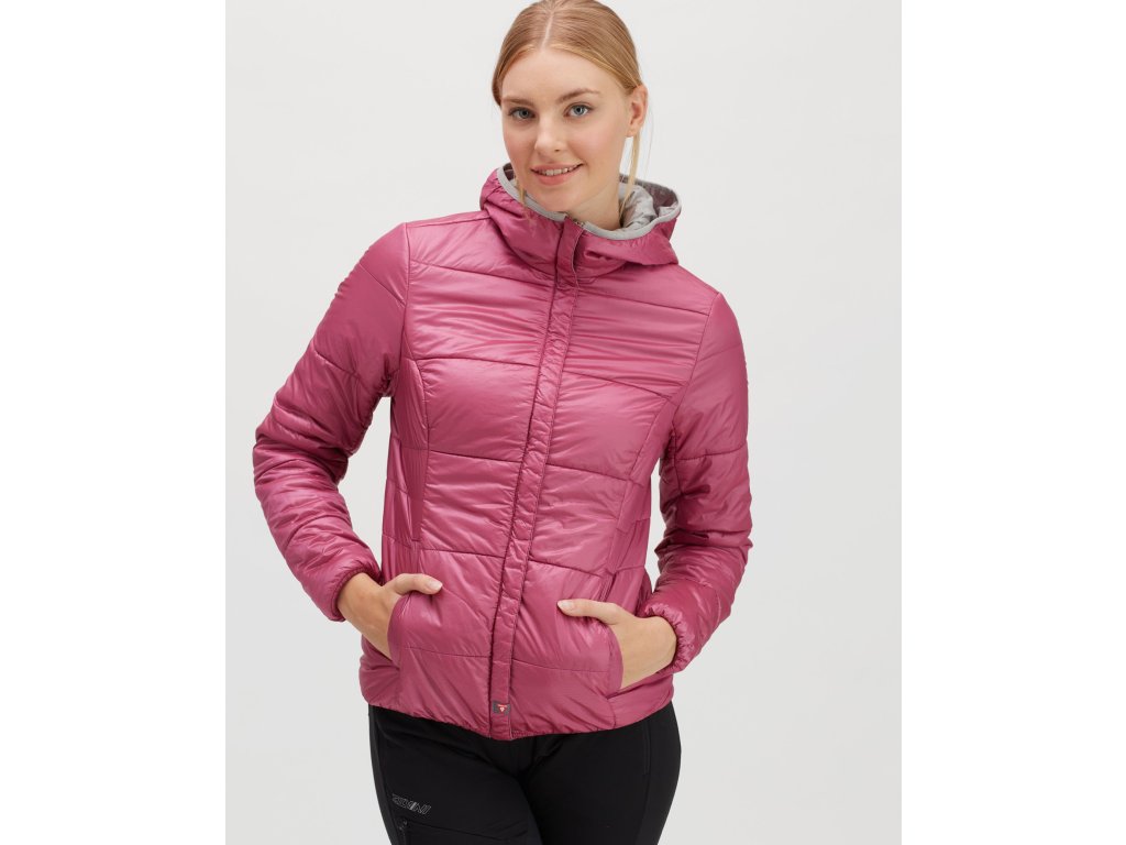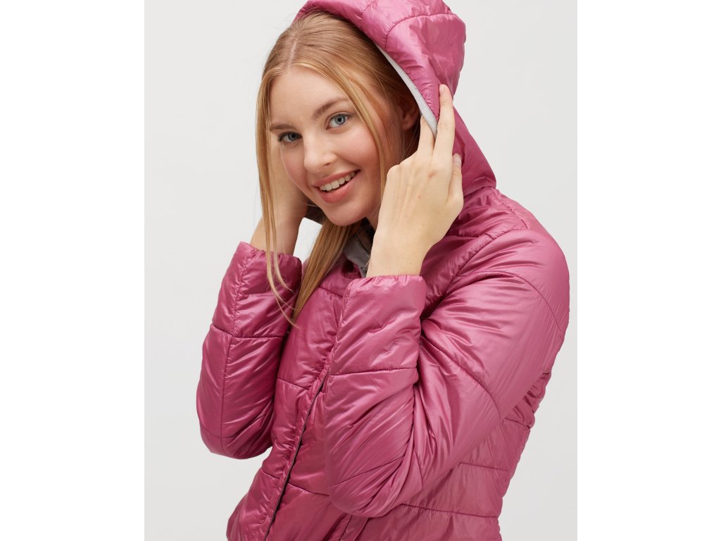 Dámská primaloftem zateplená bunda s kapucí pro volnočasové využití. Je snadno sbalitelná do vnitřní kapsy.