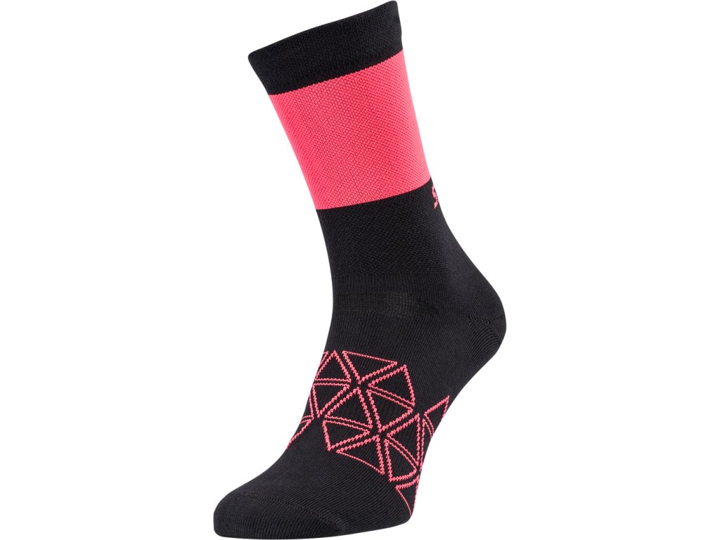 Vysoké cyklistické ponožky z funkčního materiálu. Jsou anatomicky tvarované a vyztužené na špičce i patě. Materiál zvyšuje odvod vlhkosti z povrchu pokožky.