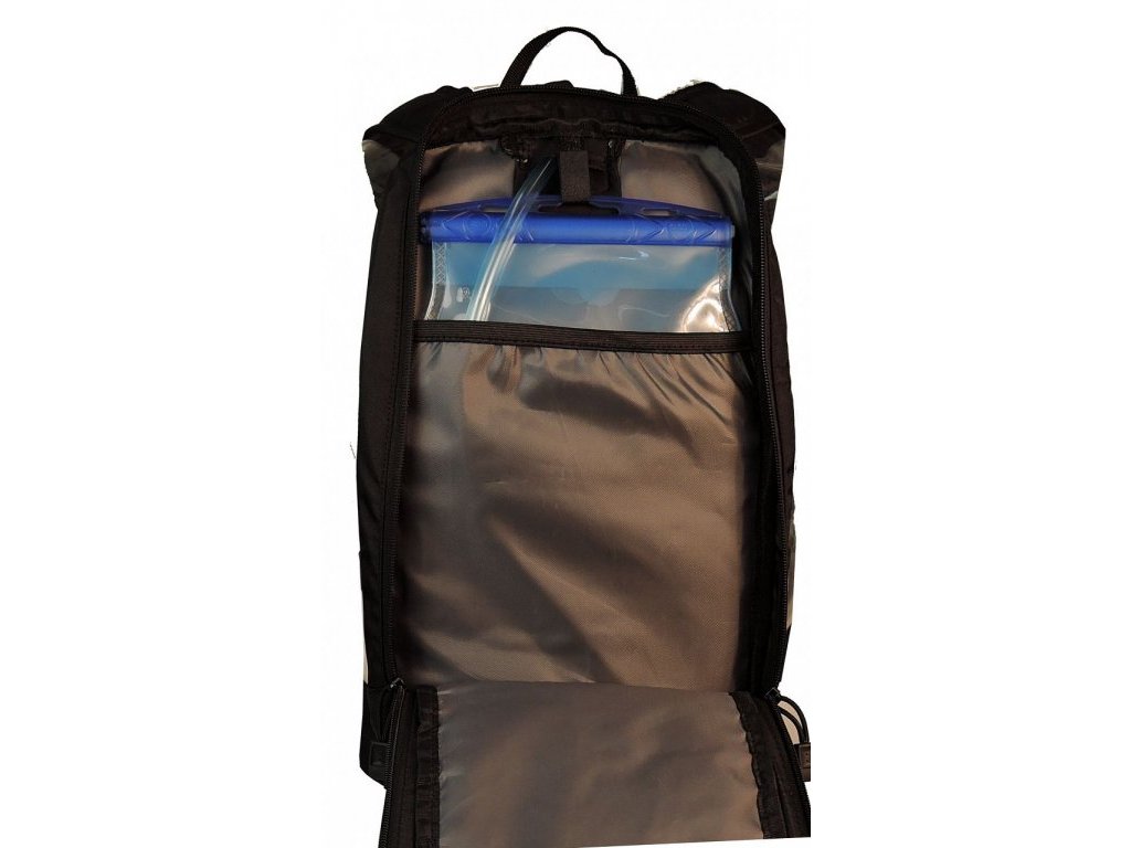 hlavní úložná kapsa s dvojcestným zipem se dá otevřít po celé délce + oddělená část na vodní rezervoár 2l (poutka pro zavěšení a hadičku jsou samozřejmostí)