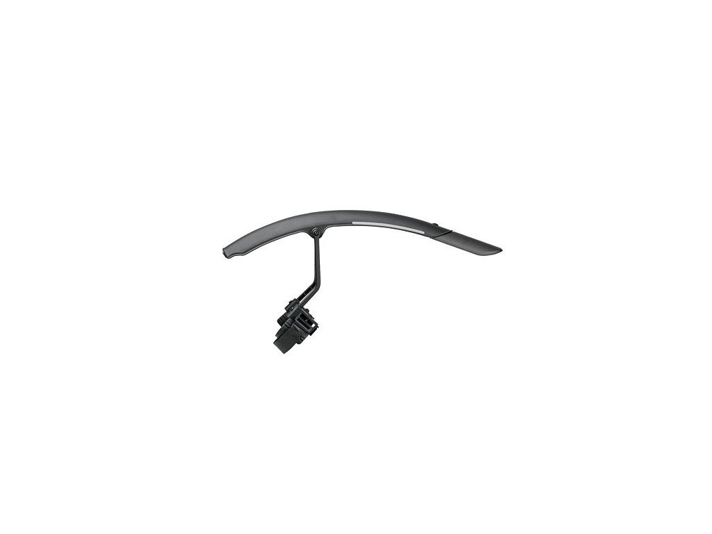 Přední dvoubarevný blatník s rychlou, bezpečnou a jednoduchou montáží. Nastavitelné vzpěry zajišťují těsnější přilnutí k pneumatice a vynikající ochranu před blátem, zatímco vysoce leštěná spodní strana pomáhá předcházet usazování nečistot a usnadňuje čištění. Přiložené reflexní nálepky 3M zajišťují bezpečnost v noci.