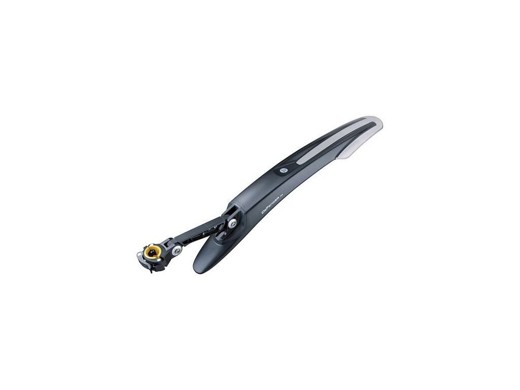 Zadní blatník DeFender™ M2 na horské kolo velikosti 26". Blatník nabízí systém rychlého uchycení určený pro sedlovky o průměru 25,4 až 34,9 mm, kdy demontáž blatníku je otázkou několika málo vteřin. Dva klouby usnadňují správné nastavení pozice blatníku vůči kolu. Blatník je vyroben z vysoce odolného plastu a spodní díl má leštěný povrch, který zabraňuje usazování nečistot.
