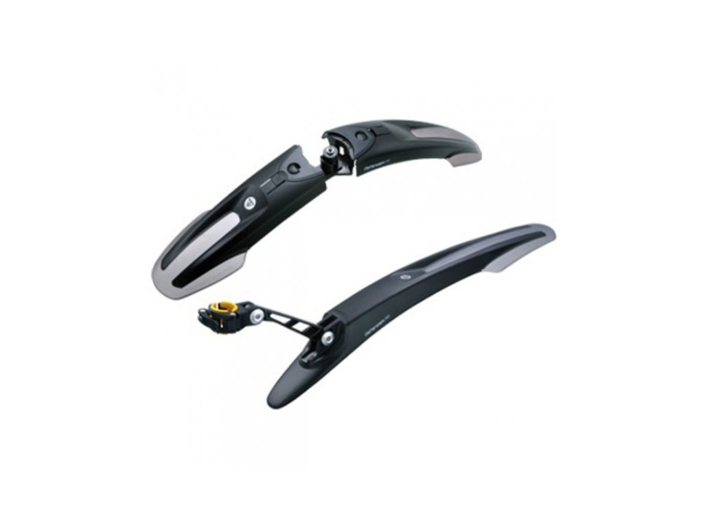 Sada předního a zadního blatníku Topeak pro horská kola 26. Sada se skládá s předního blatníku Defender M1, který je díky své unikátní konstrukci kompatibilní téměř se všemi druhy odpružených vidlic. Instalace blatníku je díky rychloupínacího systému otázkou několika málo vteřin. Zadní blatník Defender M2 má bezpečný rychloupínací systém určený pro sedlovky o průměru 25,4 až 34,9 mm. Dva klouby usnadňují správné nastavení pozice blatníku vůči kolu.