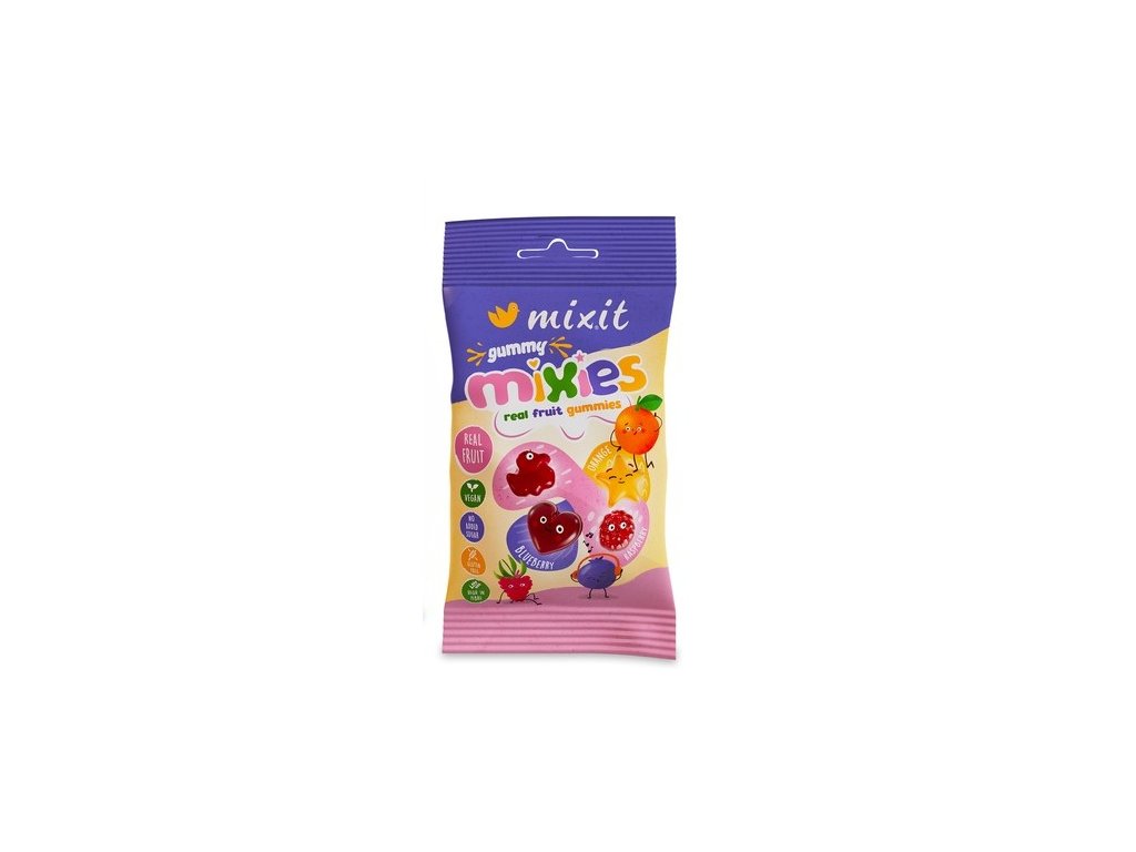 Královské želé! Tohle bude hit pro malé i velké. Mixies jsou bonbonky plné ovoce bez zbytečných umělých přísad, bez přidaného cukru a bez lepku. Co jim však nechybí je osvěžující ovocná chuť, však jsou také celí z ovoce! Pochutnejte si na malinových, borůvkových a pomerančových Mixies roztomilých tvarů a přírodních barev. Garantujeme, že se Mixies stanou hitem, ať už je nabídnete těm nejmenším nebo dospělým.