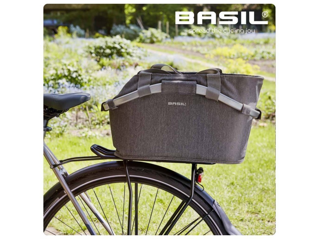 Moderní luxusní pevný koš na nosič vhodný nejen pro e-bike se systémem Basil MIK, který je kompatibilní s nosičem stejného systému, Pro případ, že tento nosič nemáte, použijte adaptér MIK (66266), který Vám pomůže použít jakýkoliv nosič.