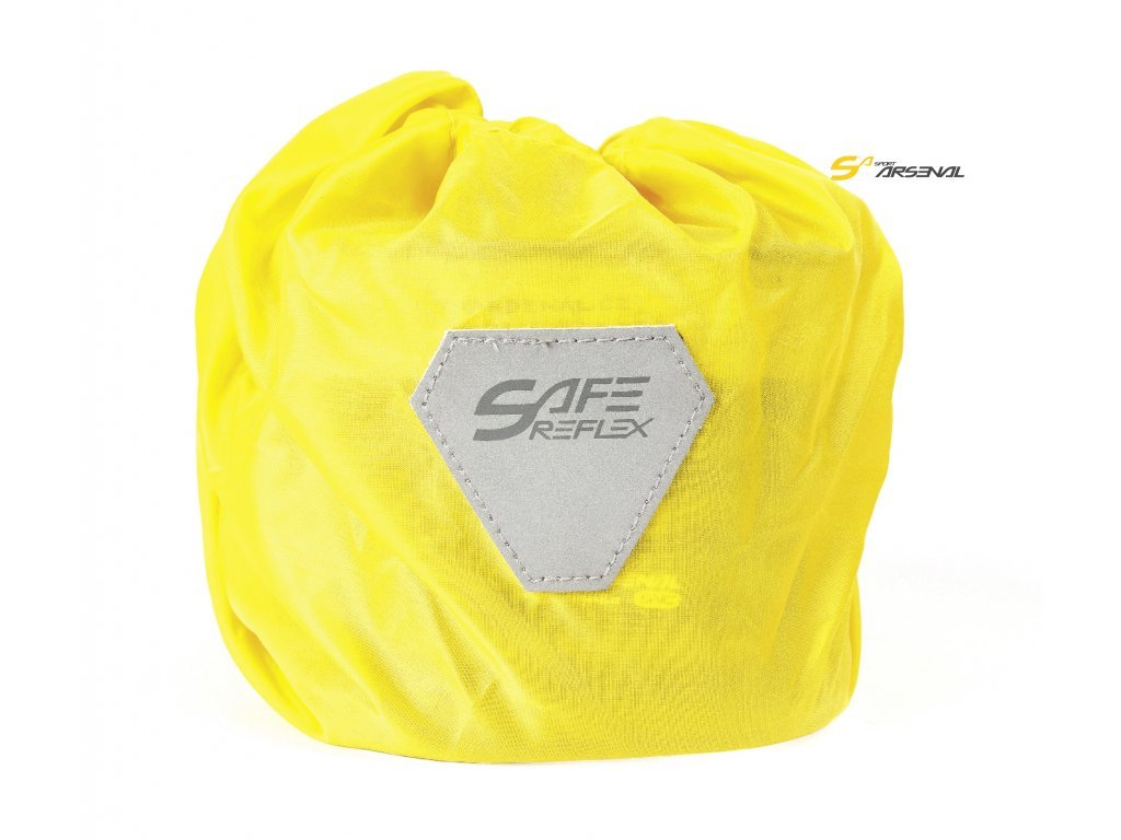 žlutý návlek proti znečištění s reflexním prvkem = návlek ochrání brašnu v případě vlhka, mlhy, mrholení. POZOR ne v případě deště, návlek není pláštěnka