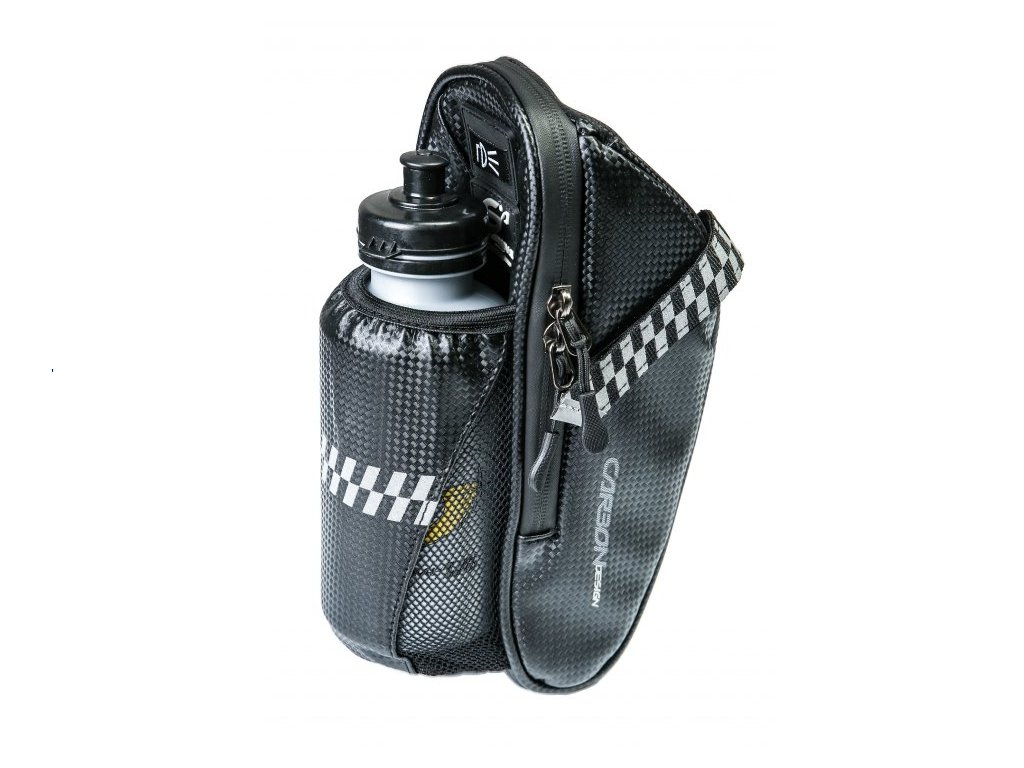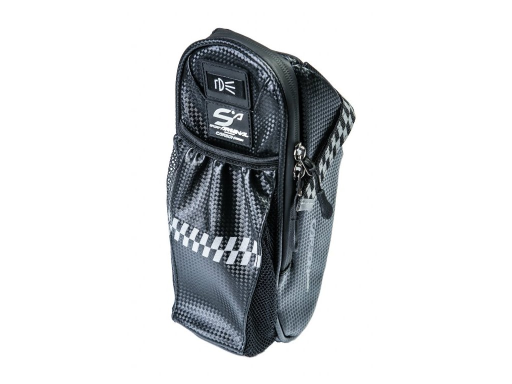 Brašna pod sedlo s kapsou pro cyklistickou lahev z moderního materiálu CarbonDesign pojme to nejdůležitější co je na cestách potřeba. Klíče, peníze, sadu lepení, anebo nářadí na opravu kola. Brašna se připevňuje pod sedlo popruhy se suchým zipem. Úzký profil brašny neomezí pohyb vašich nohou při šlapání. Tato brašna je ideálním doplňkem na všechny typy kol.