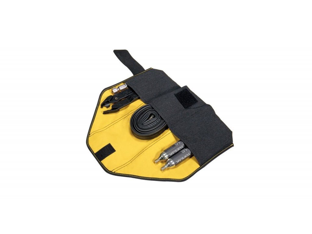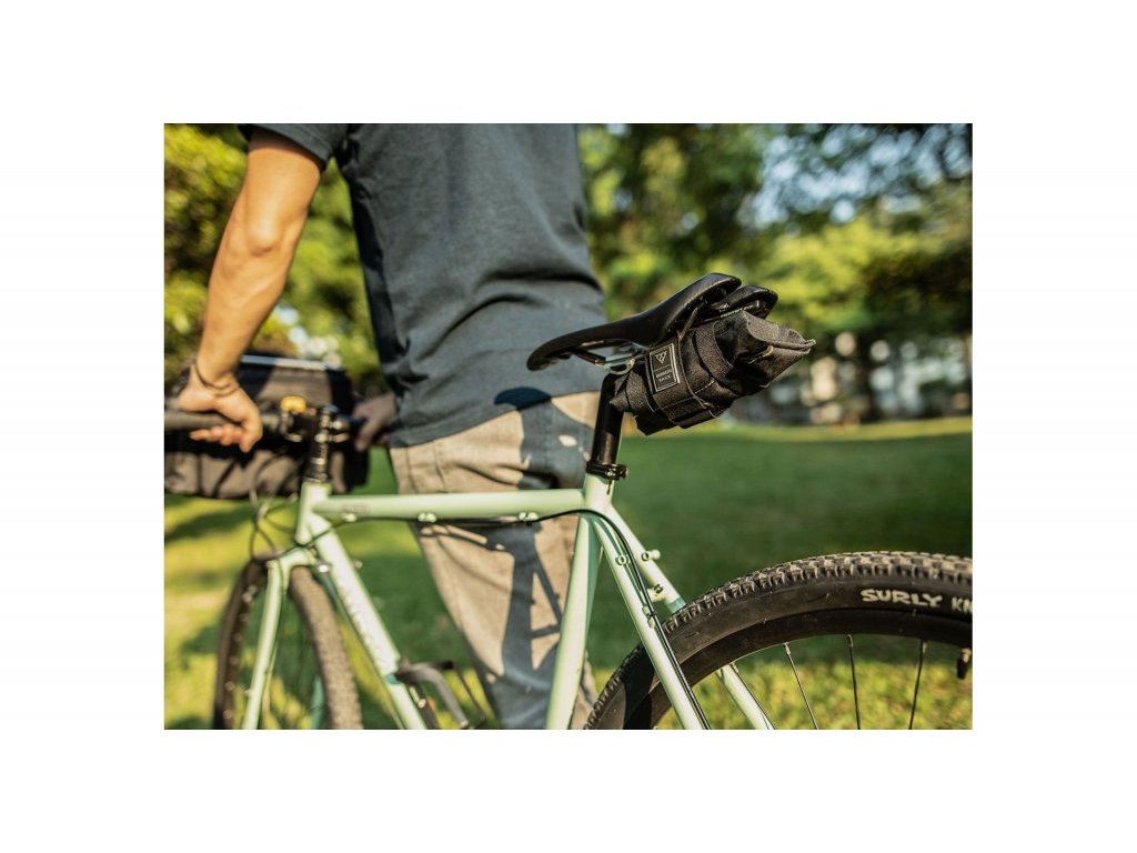 Kompaktní roll-up brašna se třemi přihrádkami a vnitřními organizéry, které udrží vybavení a drobné předměty na místě. Odolný materiál odpuzující vodu udrží obsah v suchu a snadno se čistí. Bezpečný upínací popruh umožňuje snadnou montáž bez nářadí na rámovou trubku, sedlovku nebo na sedlové ližiny.