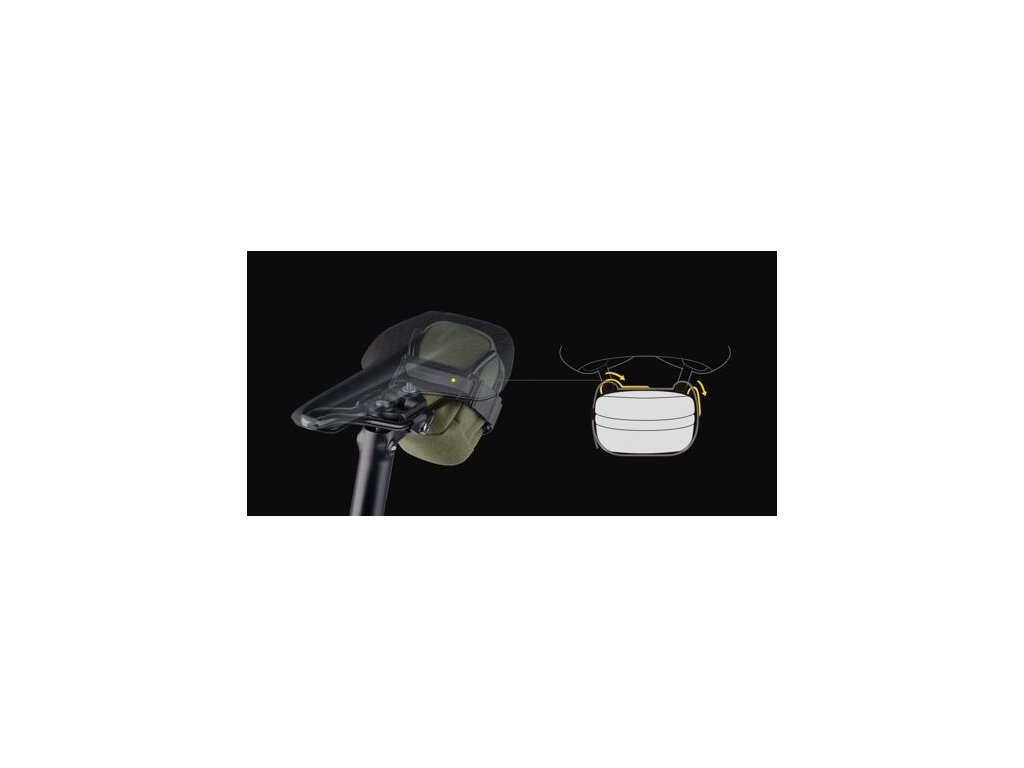 Kompaktní podsedlová brašna s popruhem na suchý zip pro přepravu duše, montpák, případně dalších drobností pro bezpečnou a jistou jízdu. Vestavěná protiskluzová tkanina zajišťuje bezpečnost při upevnění. K dispozici jsou tři velikosti a dvě barvy.