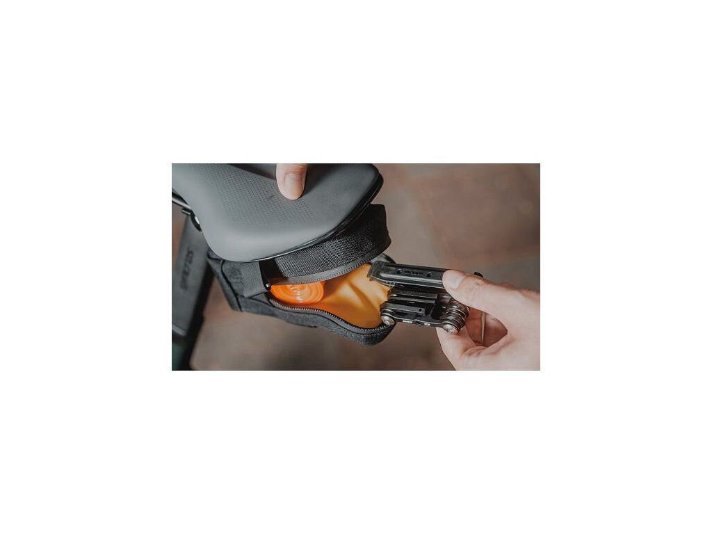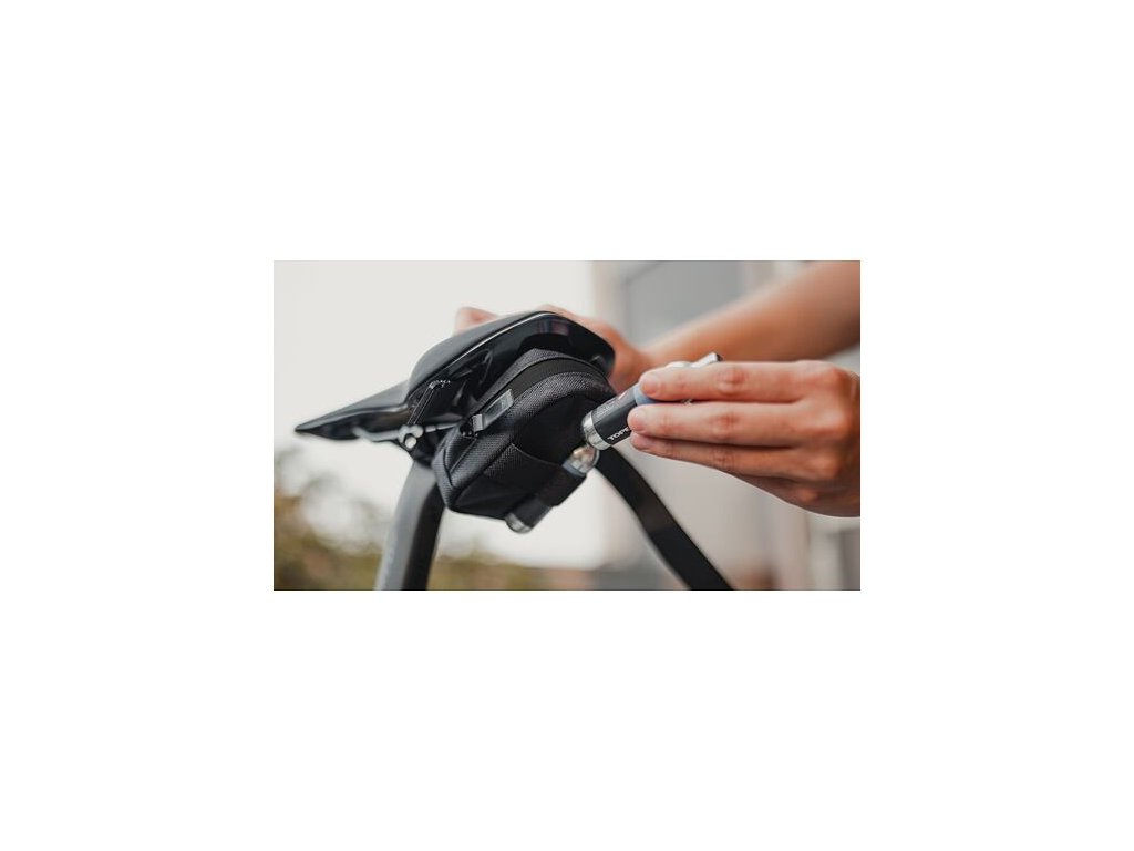 Kompaktní podsedlová brašna s popruhem na suchý zip pro přepravu duše, montpák, případně dalších drobností pro bezpečnou a jistou jízdu. Vestavěná protiskluzová tkanina zajišťuje bezpečnost při upevnění. K dispozici jsou tři velikosti a dvě barvy.