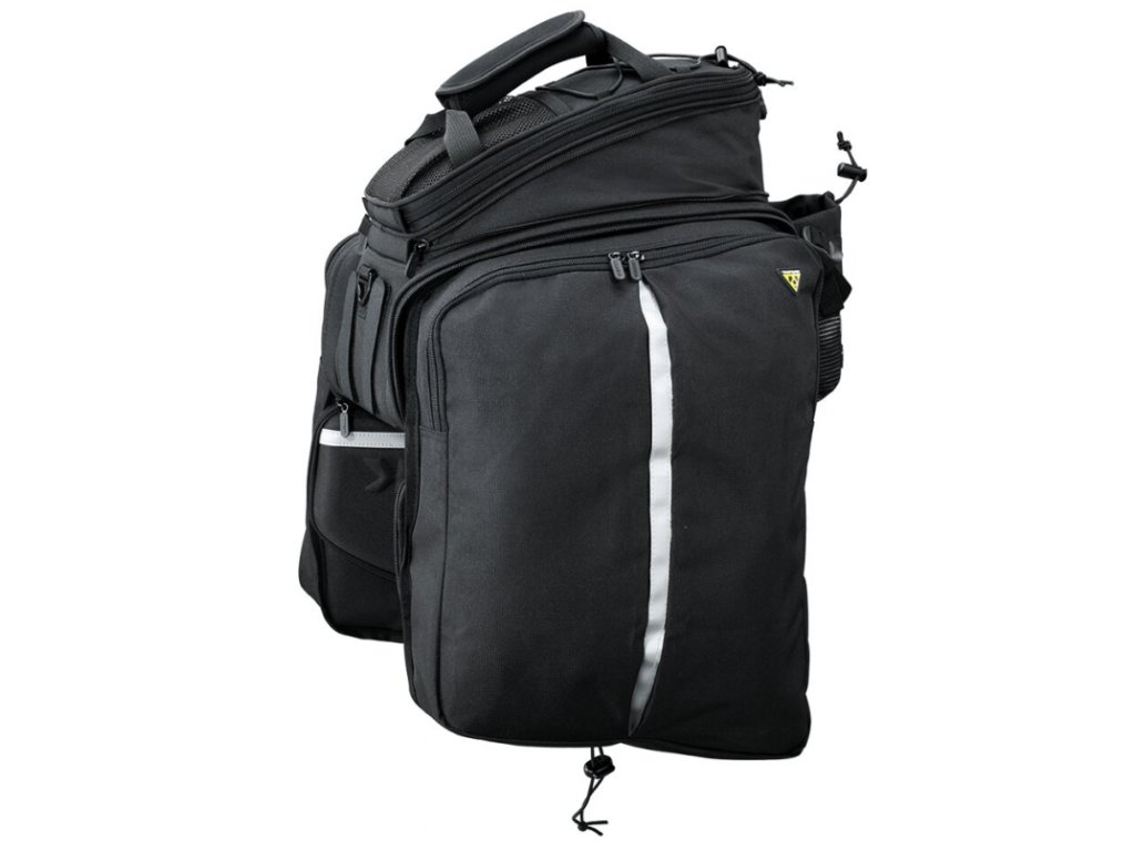 Rozšiřitelná odolná brašna s uchycením na suché zip. Rozdělená hlavní komora a boční panely se rozšiřují pro větší úložnou kapacitu. Zadní držák na láhev s vodou umožňuje přenášet více vody na delších cestách. Připevňuje se k nosiči pomocí suchý zipů.