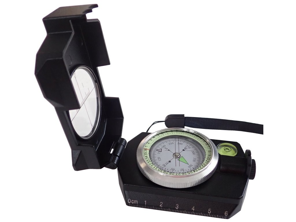 Dokonalá buzola v ARMY stylu s mnohačetnými funkcemi má otevírací kryt pro ochranu kompasu, mnoho měřítek pro rychlý výpočet vzdálenosti na mapě, tabulku s orientačními výpočty vzdáleností, s možností měření výšky horizontu a sklonu terénu, v kompasu je zabudovaný teploměr a také vodováha pro přesné nastavení kompasu pro přesné měření.