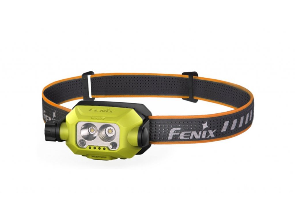 Fenix WH23R je nabíjecí pracovní čelovka, která se vyznačuje vysokou odolností proti pádu, unikátní konstrukcí se dvěma reflektory a funkcí pro bezdotykové zapínání a vypínání. Dálkový reflektor vytváří mírně zaostřený světelný paprsek s dosvitem až 84 metrů a druhý reflektor má světelnou stopu velmi širokou a plynulou. Světelný tok každého reflektoru je až 300 lumenů a jejich světlo lze v turbo režimu zkombinovat do celkového výkonu 600 lumenů. Na boku čelovky je otočný ovladač, kterým lze volit čtyři polohy: vypnuto - dálkový reflektor - široký reflektor - turbo režim. V polohách širokého a dálkového reflektoru lze přepínat tři stupně výkonu tlačítkem, které je ukryté v otočném ovladači.