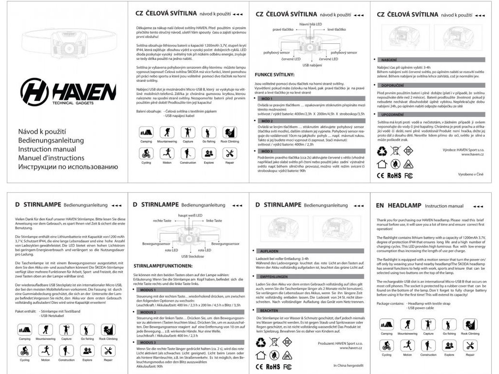 Čelovka je vybavena pohybovým senzorem díky kterému můžete světlo vypnout/zapnout! Čelová svítilna SWEEP má více funkcí, které pomohou při práci nebo sportu a které jsou volitelné pomocí dvou tlačítek na horní straně svítilny.