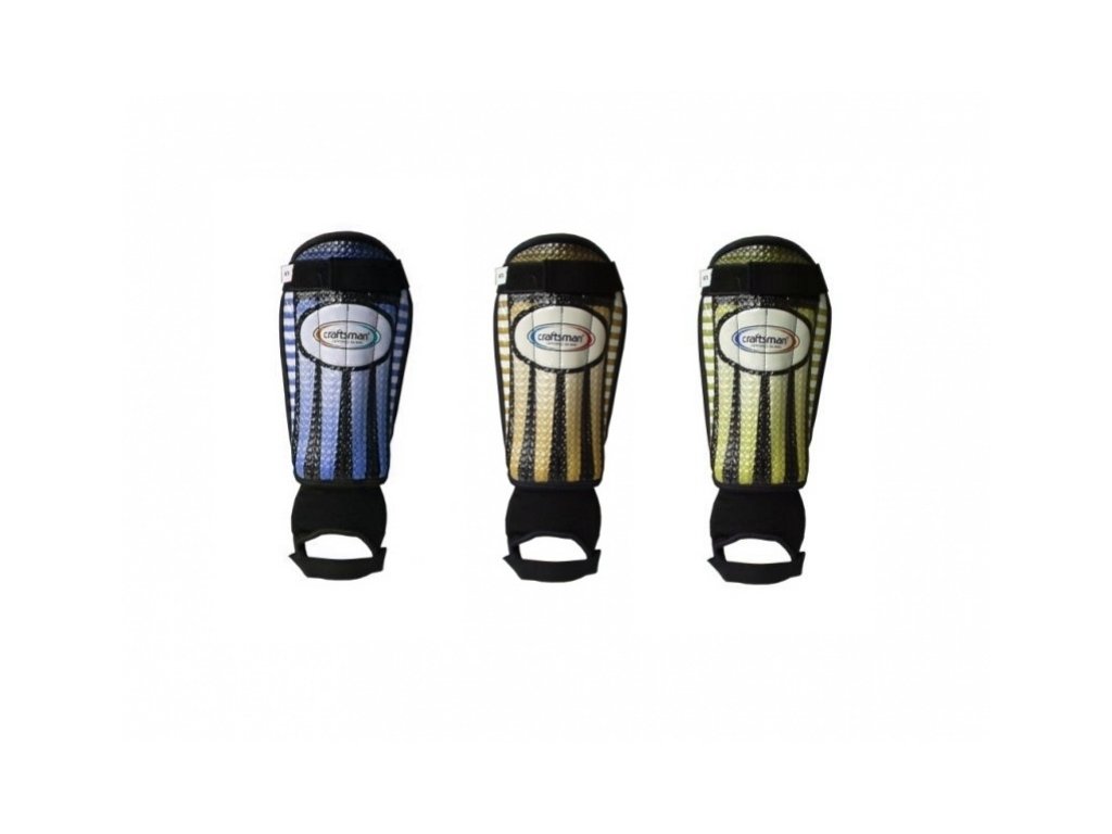Fotbalové chrániče holení Craftsman jsou vyrobené z potištěné PU kůže, velikost S. Měkká gelová náplň uvnitř chrániče perfektně obepíná holeň a poskytuje kvalitní ochranu nohy při hře. Molitanová výpň ve spodní části chrání kotníky a Achilovu šlachu. Jedná se o velmi kvalitní fotbalové chrániče za hodně příznivou cenu.