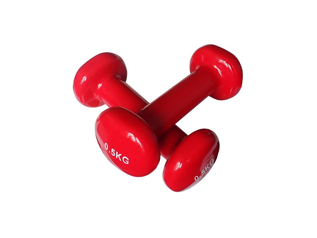 Jednoruční činky, vinylový potah,kovové jádro, 2 ks x 0,5 kg. Vhodné pro kondiční cvičení a pro aerobic.
