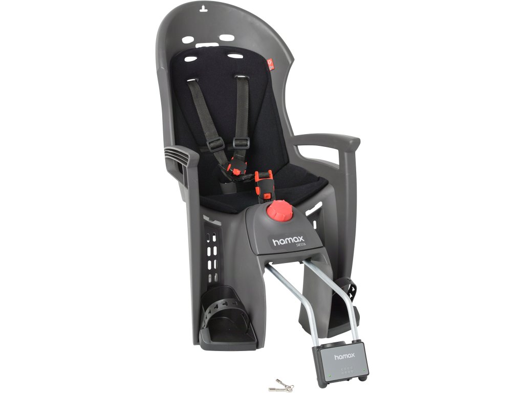 Nejoblíbenější cyklosedačka Hamax Siesta uveze každé dítko vážící do 22 kilogramů. Sedačku za sedlem uchytíte bez nutnosti použití nosiče a sklopíte ji až o 20 stupňů. Nosné tyče navíc snadno uzamknete.