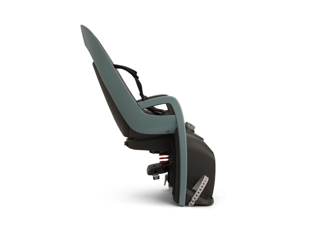 Vnitřní polstrování zvyšuje komfort při jízdě a výškově nastavitelné opěrky nohou s integrovanou ochranou proti vniknutí nohou do výpletu zajišťují vysokou úroveň bezpečí. Nový systém bezpečnostních popruhů a vylepšené upínací přezky usnadňují manipulaci a přinášejí ještě lepší stabilitu dítěte v sedačce. Zadní reflexní prvky podporují viditelnost v provozu. Sedačka je kompatibilní s většinou nosičů na trhu (cca 90 %), což usnadňuje instalaci na široký výběr kol.