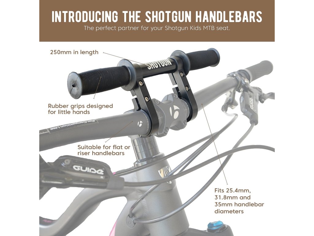 Tyče řídítek Shotgun Kids MTB jsou "teplejší" alternativou pro dětské ručičky. Řídítka zajistí, že Váš malý spolujezdec se nebude hrát s přehazovačkou, brzdami nebo sedlovkou