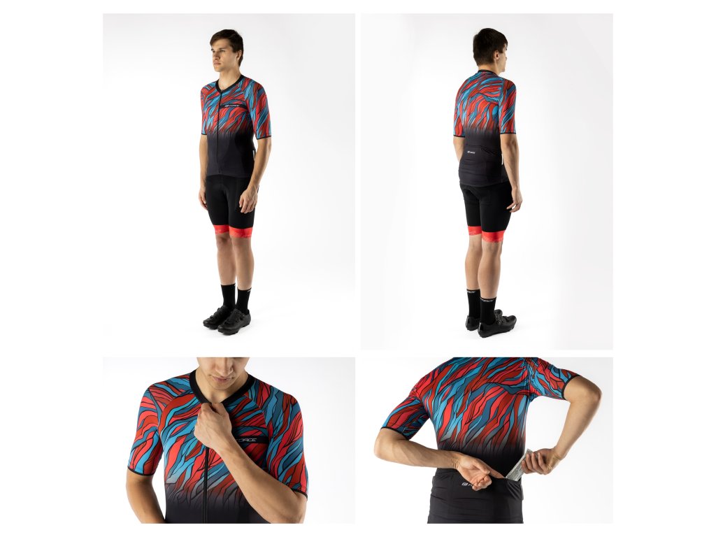 dres F LIFE UNI kr. rukáv, črn-petrol-červený