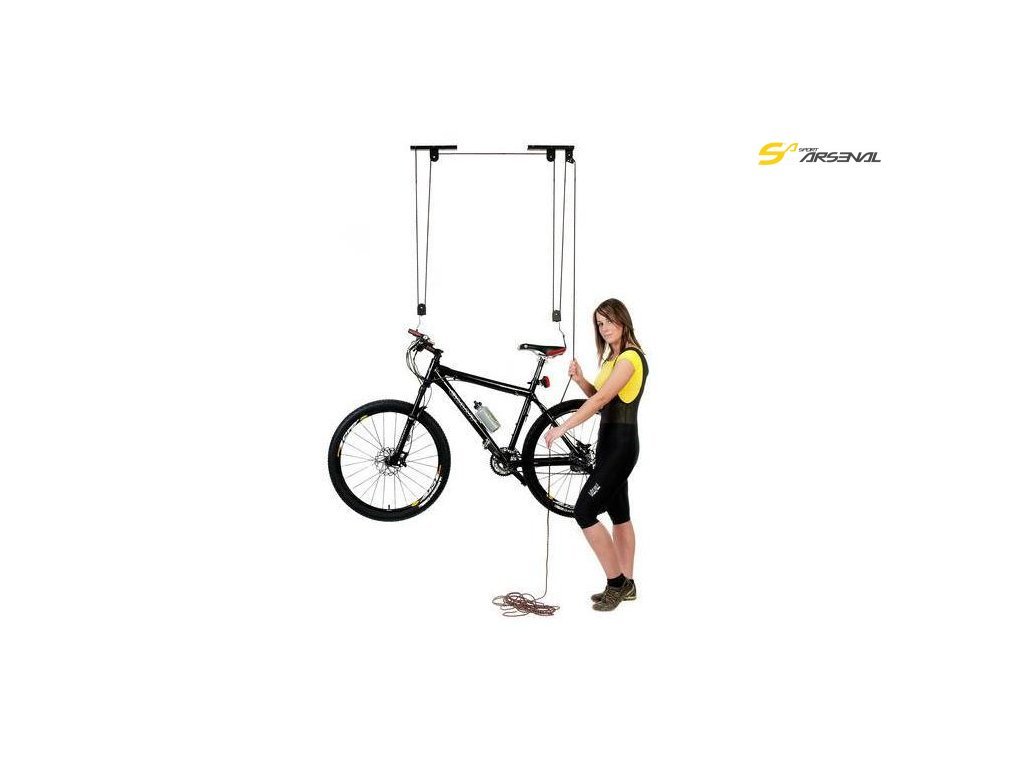 - kladkový držák na kolo se připevní ke stropu místnosti (součástí držáku jsou pouze vruty)