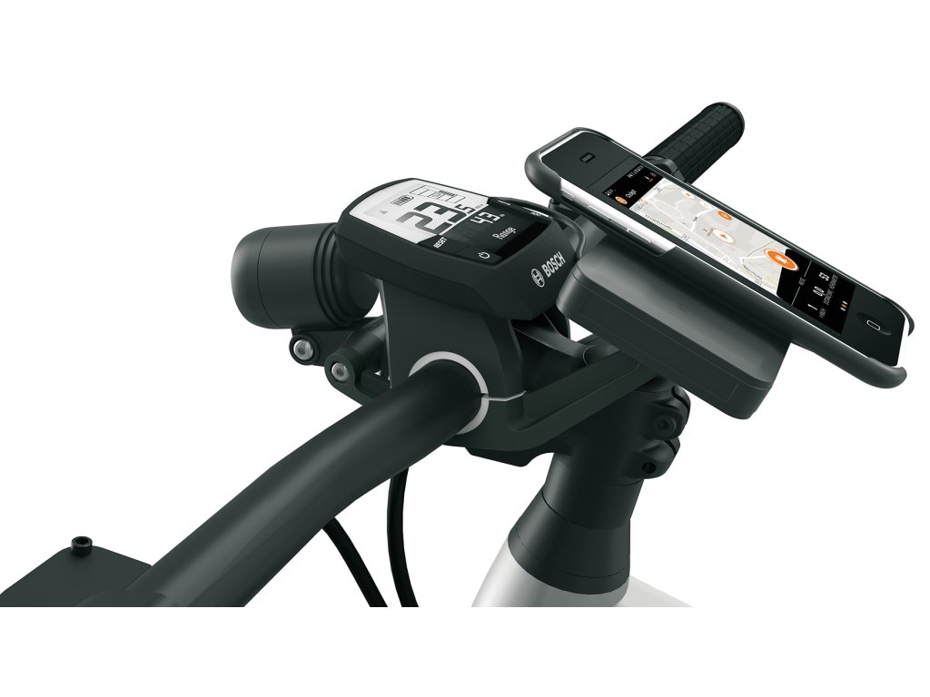 Držák smartphonu COMPIT / E je vyvinutý speciálně pro elektrokola s displejem Bosch Intuvia / Nyon, je uzpůsoben tak, že chytrý telefon a display Bosch drží na jednom společném držáku na řídítkách.