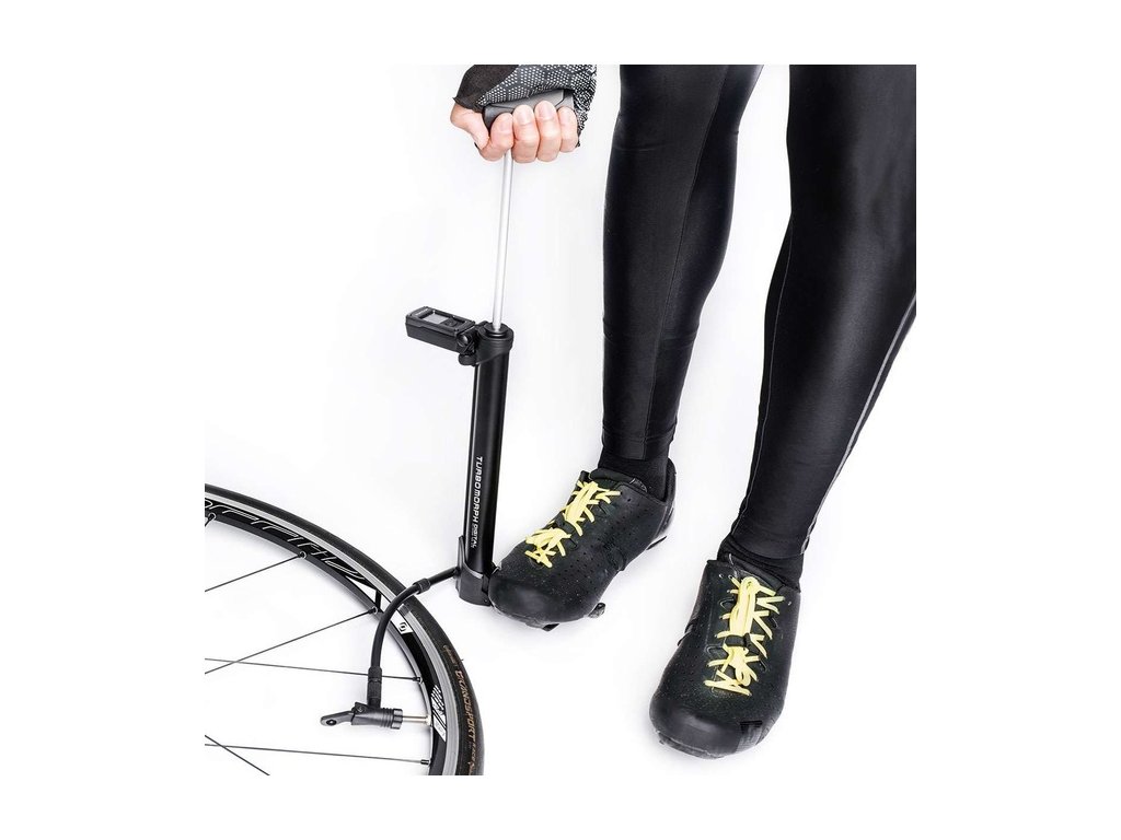 Cyklo pumpa TOPEAK TURBO MORPH DIGITAL vychází z úspěšné řady Morph a přidává digitální manometr. Maximální tlak této pumpy je 11 barů. Díky vyklápěcí základně pro fixaci nohou a ohebné hadici je tuto pumpu radost používat.