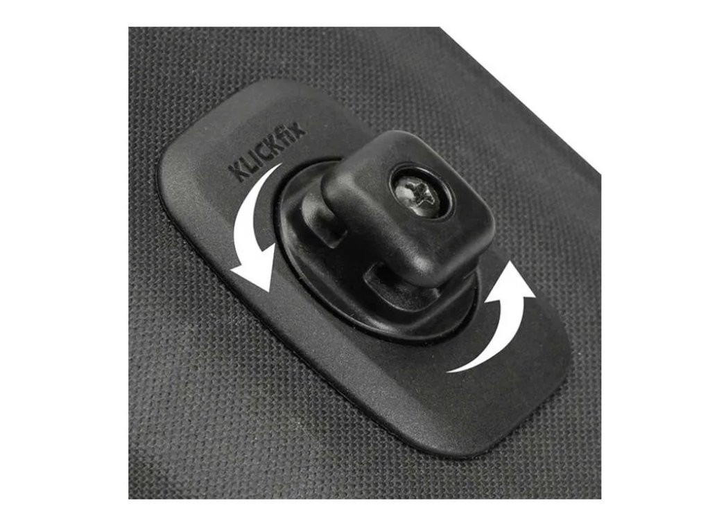 Pomocí adaptéru KLICKfix Quad Mini lze tašku jednoduše zacvaknout na řídítka nebo představec, zatímco integrovaná otočná spojka umožňuje rychlou změnu z vertikální na horizontální orientaci.