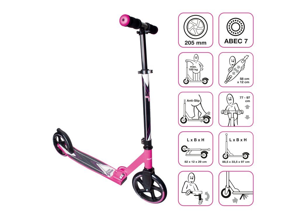 • Stylový design: Buďte originální s touto koloběžkou v růžové barvě.