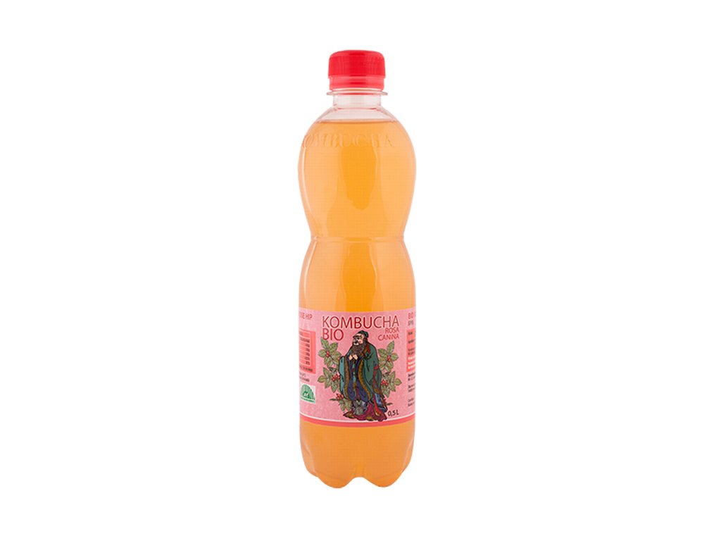 Kombucha z šípkového odvaru. Kombucha je lehce perlivý fermentovaný čajový nápoj s kvasinkovými kulturami a bakteriemi kyseliny mléčné.