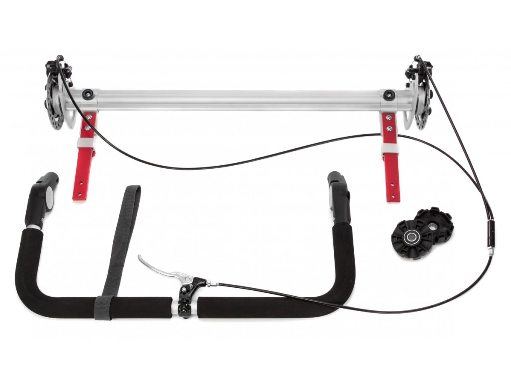 Kotoučové brzdy s nápravou a řidítky vhodné pro dvoumístné dětské vozíky Qeridoo KidGoo 1.