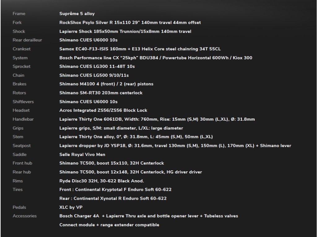 | Představec | Lapierre Thirty One, A-head, 0˚ |