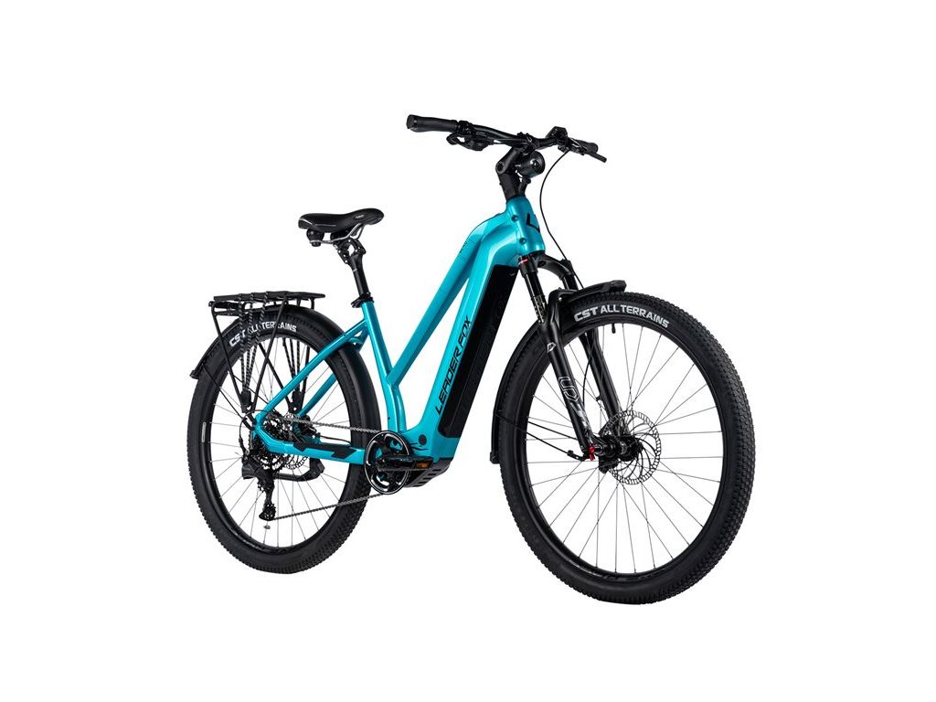 Novinka. Dámské krosové elektrokolo Leader Fox BEND 28" v hliníkovém rámu, odpruženou přední vidlicí, kotoučovými brzdami, blatníky a zadním nosičem. Univerzál na silnici i do terénu.