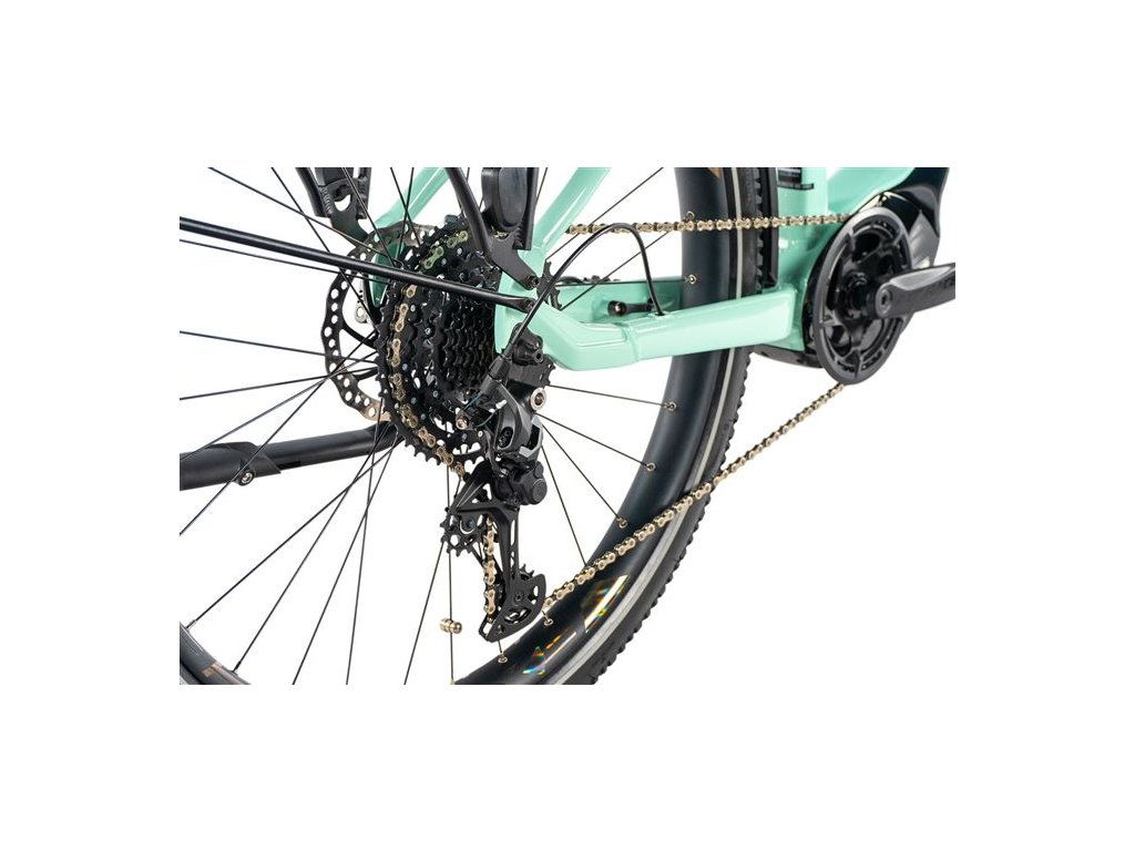 Středový motor Panasonic GX Ultimate s nominálním výkonem je vybaven torzním snímačem síly šlapání. Čím větší silou cyklista šlape, tím větší silou motor pomáhá. Motor vyniká plynulým a velmi tichým chodem.