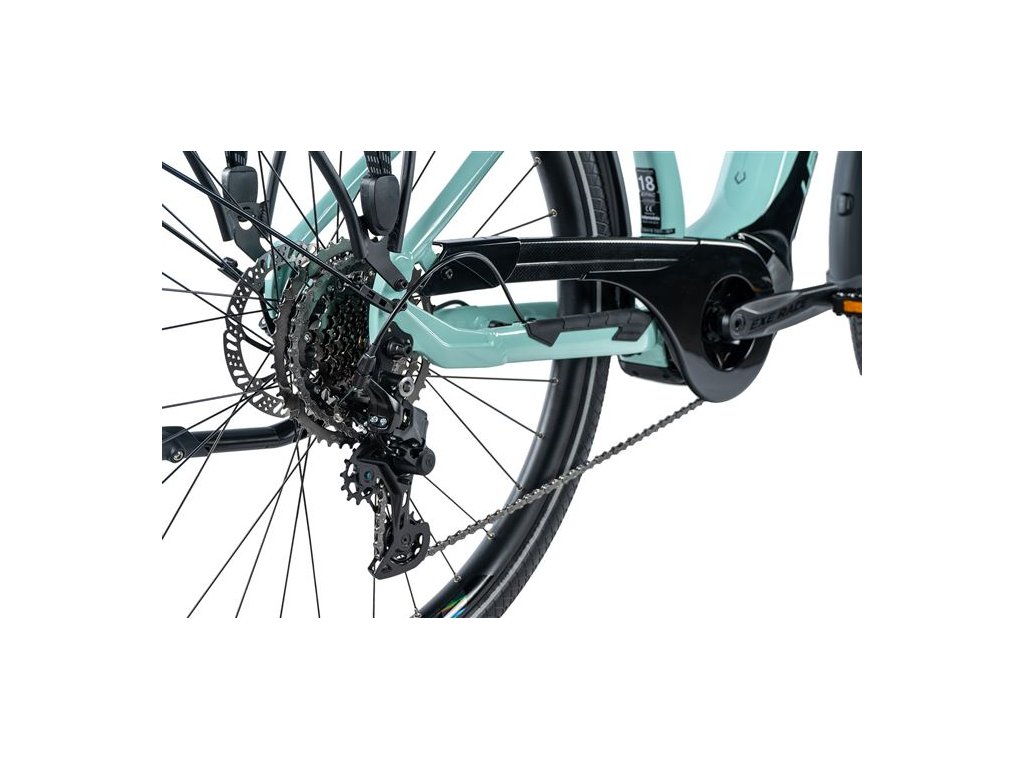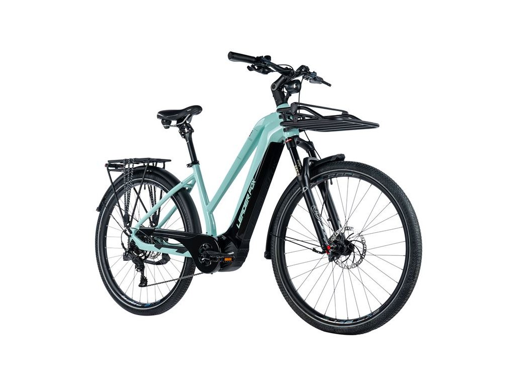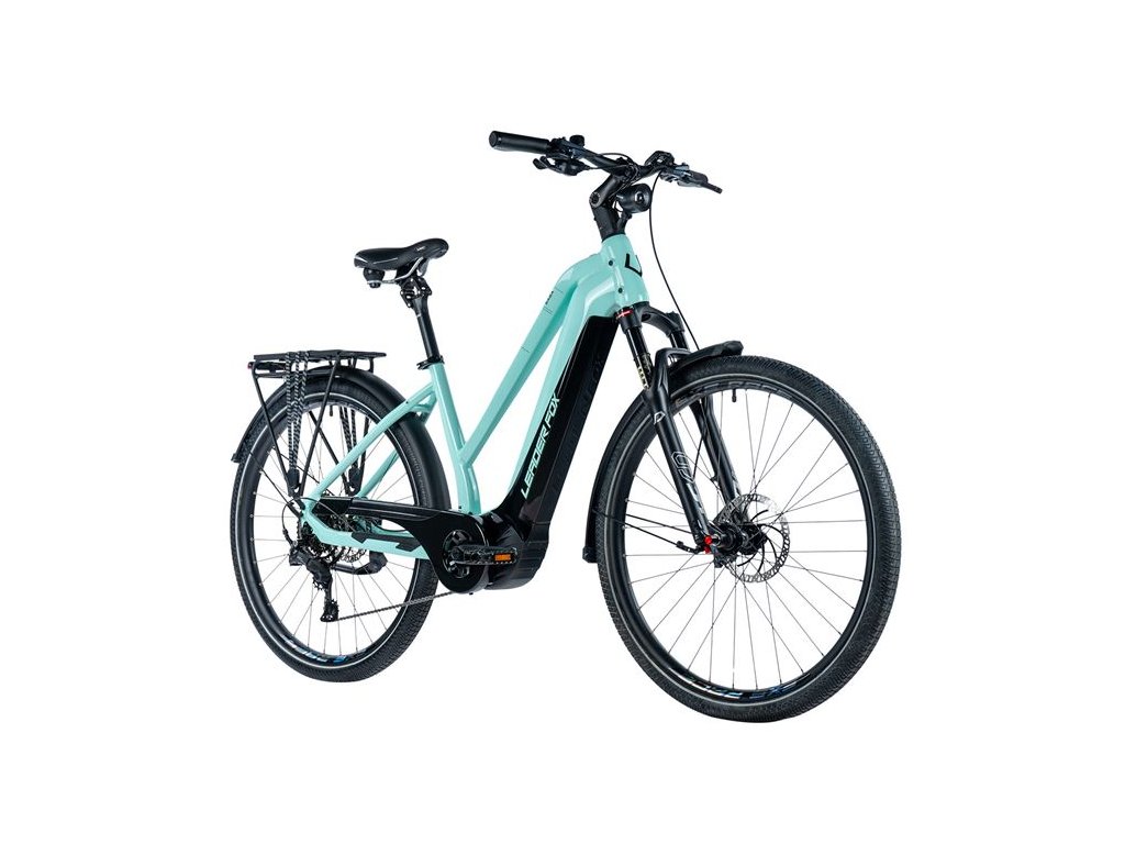 Novinka. Dámské trekingové elektrokolo Leader Fox SABA 29" v hliníkovém rámu, odpruženou přední vidlicí, kotoučovými brzdami, blatníky a zadním nosičem. Vyrazte do přírody nebo kolem města bez omezení.