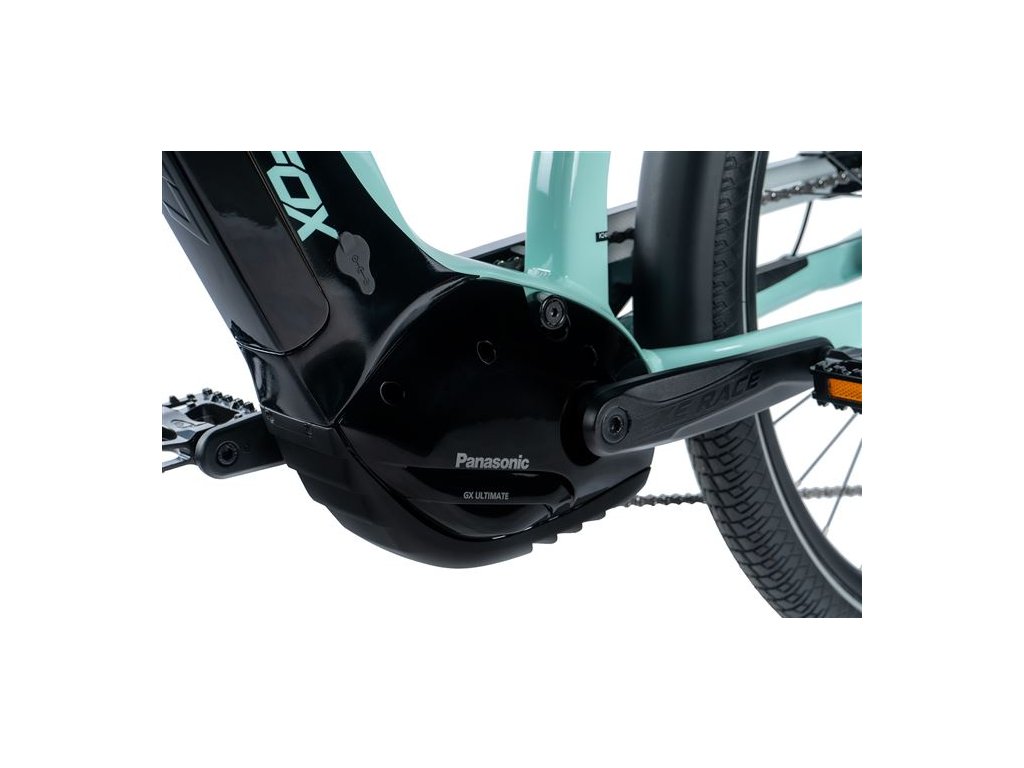 Středový motor Panasonic GX Ultimate s nominálním výkonem 250W je vybaven torzním snímačem síly šlapání. Čím větší silou cyklista šlape, tím větší silou motor pomáhá. Motor vyniká plynulým a velmi tichým chodem.