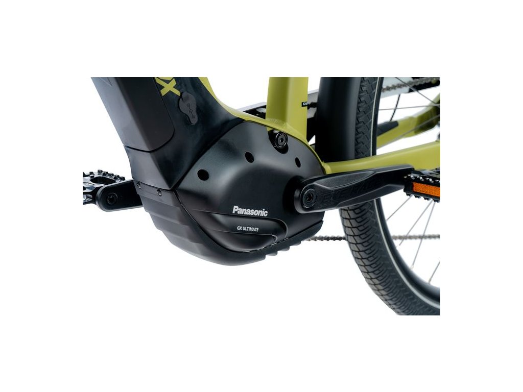 Středový motor Panasonic GX Ultimate s nominálním výkonem 250W je vybaven torzním snímačem síly šlapání. Čím větší silou cyklista šlape, tím větší silou motor pomáhá. Motor vyniká plynulým a velmi tichým chodem.