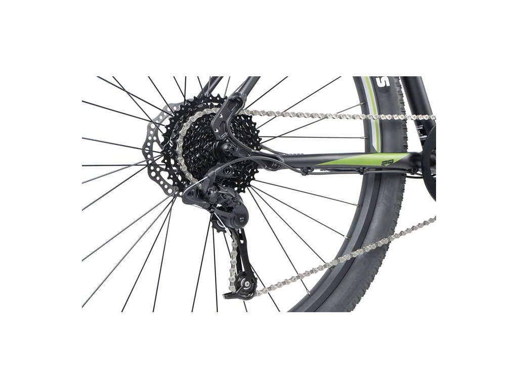 Odpružená přední vidlice vám přinese pohodlí a komfort při jízdě po kořenech i zpevněných cestách. Při řazení se můžete spolehnout na kvalitní přehazovačku s 9 převody.
