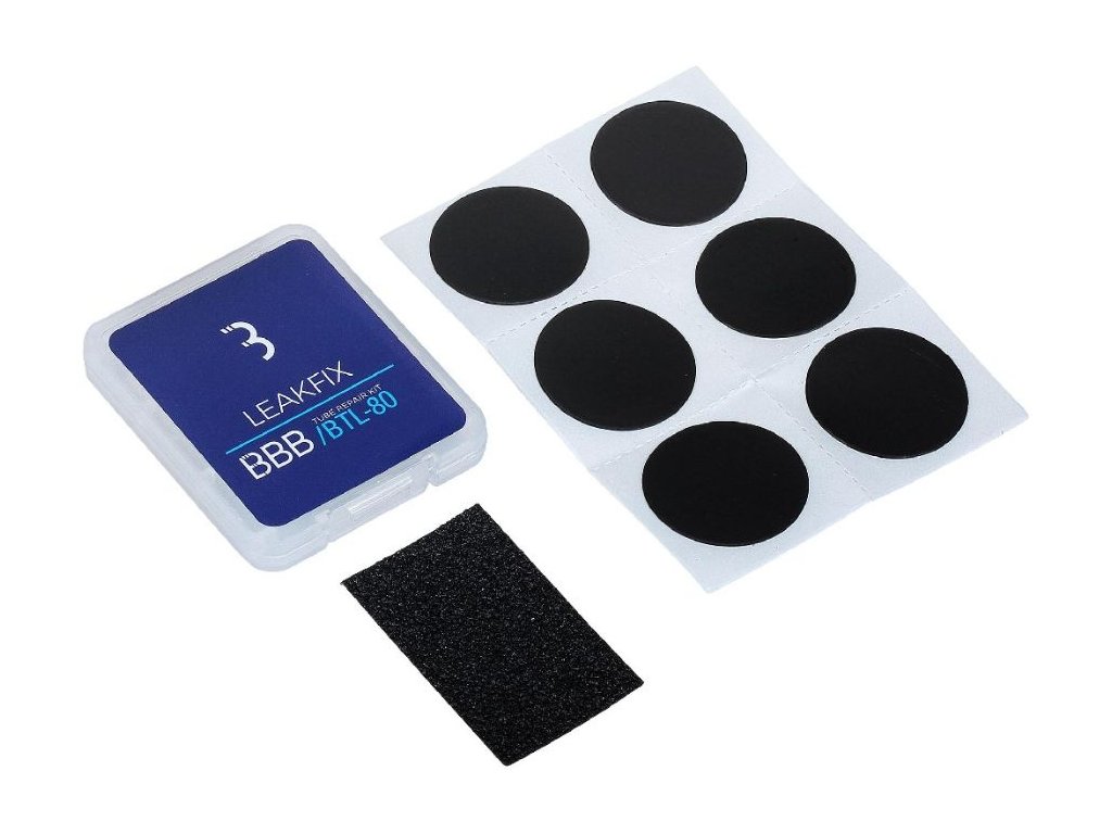 Sada na opravu duší se samolepícími fleky. Nepotřebujete lepidlo. Obsahuje: 6 kusů fleků a smirkový papír.