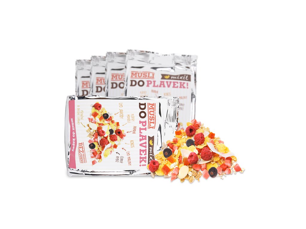 Nejoblíběnější ovocné müsli bez přidaného cukru a bez laktózy je nově v praktickém pytlíku. 5 porcí připravených na snídani, rychlou svačinu nebo doplnění energie po tréninku. Dostat Vás zpět do loňských plavek podle glykemického indexu potravin je jednoduché, zvlášť se směsí sestavenou naší výživovou poradkyní Janou Vašákovou. Tak snad Vám nebudou padat!