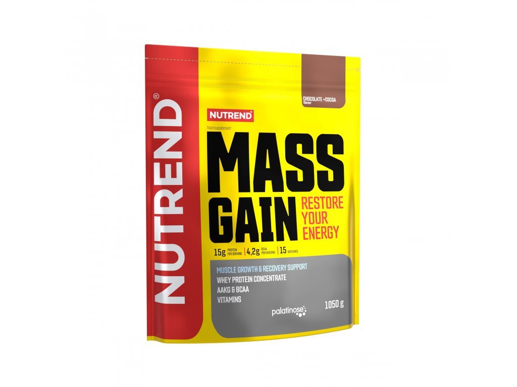 Bílkovinnou složku zde tvoří 100% WPC (syrovátkový proteinový koncentrát) a plnohodnotný sacharidový komplex je tvořen z několika druhů sacharidů, mezi kterými lze nalézt disacharid isomaltulózu (PalatinoseTM) s nízkým glykemickým indexem, glukózu, maltodextrin a fruktózu. MASS GAIN lze uplatnit po náročné fyzické aktivitě na doplnění glykogenových zásob, ale současně jako poslední lehkou stravu před náročnou fyzickou aktivitou. Efektivita tohoto produktu je zajištěna také díky obohacení o AAKG, taurin, BCAA, L-glutamin a směs vitaminů.