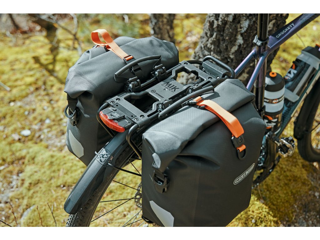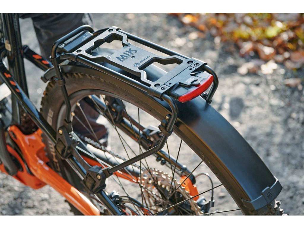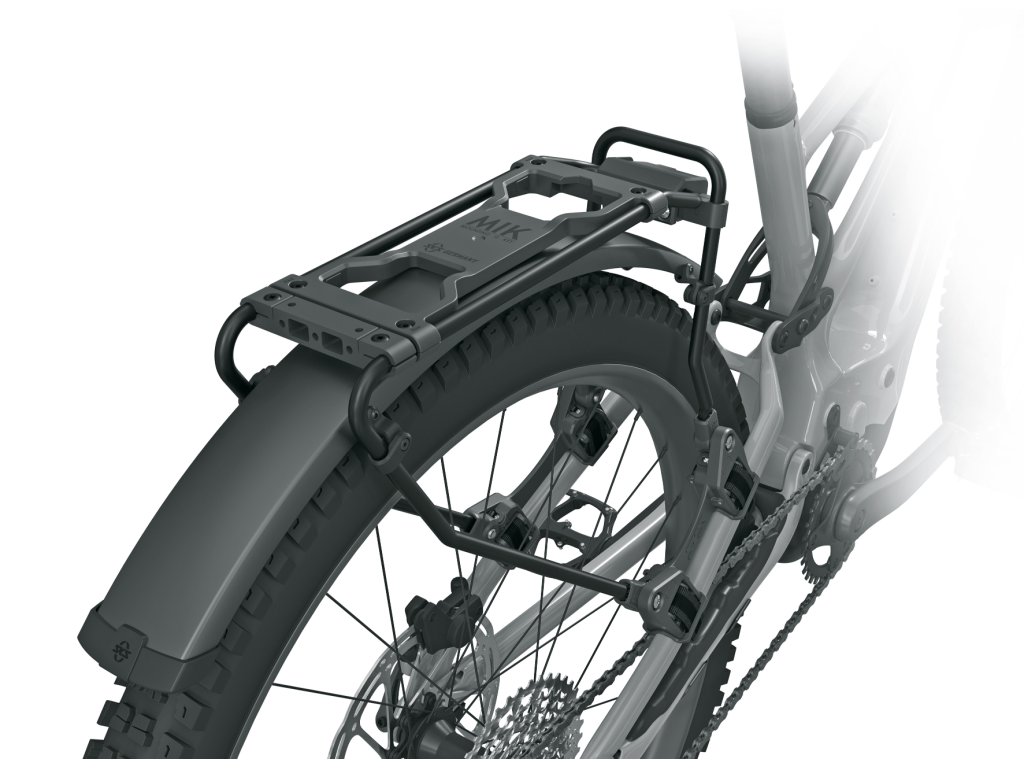 Další chytrou funkcí je adaptérová deska "MIK", která je součástí nosiče. Systém click umožňuje velmi snadné připevnění brašen na kola se systémem MIK, které lze snadno nacvaknout na nosič zavazadel. INFINITY UNIVERSAL bezpečně a spolehlivě přepraví až 12 kg zátěže (není vhodný pro přepravu dětských sedaček). Pod zavazadlový nosič lze volitelně namontovat také blatník INFINITY UNIVERSAL MUDGUARD, a to v několika jednoduchých krocích. Blatník ve dvou šířkách je univerzálně přizpůsobitelný, a nabízí tak optimální ochranu před stříkající vodou na brašny i cyklistu. Dá se dokoupit i přední varianta blatníku ve stejném dizajnu.