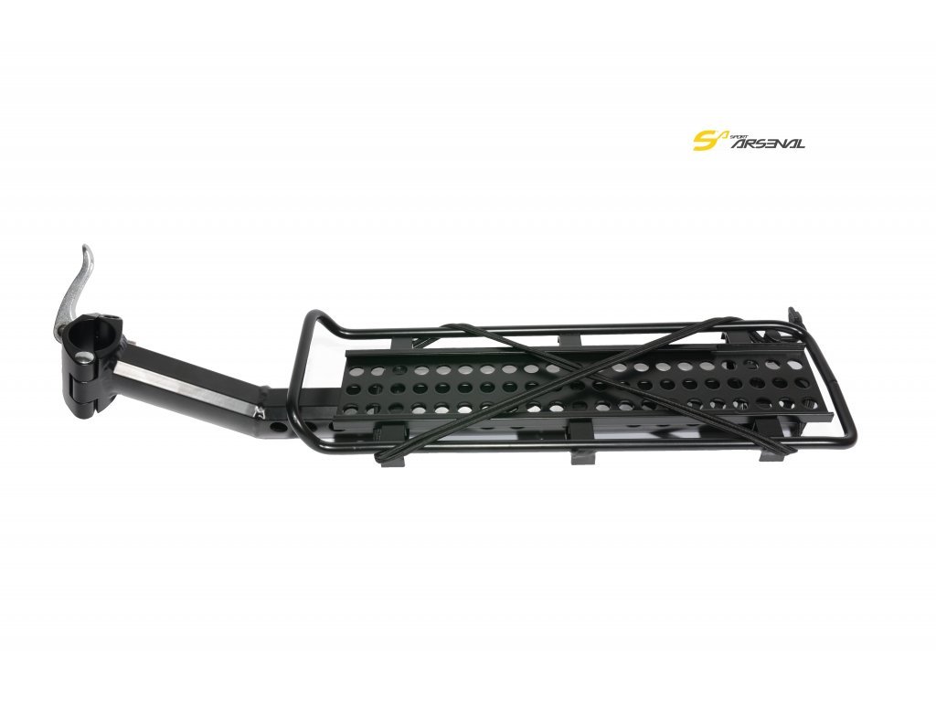 Nosič na sedlovou trubku kola větších rámů ve velikosti L a XL pro převoz lehčích nákladů. Je ideálním řešením v případech, kdy na rámech kola nejsou návarky a závity pro montáž zadního nosiče. Tělo nosiče je svařené z masivního kusu tenkostěnného protlačovaného profilu z hliníkové slitiny AW 6061.