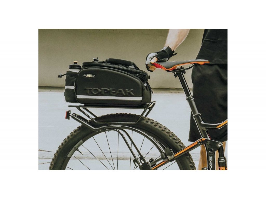 Prodloužená verze perfektního prostorného nosiče se systémem quick-mount ideální pro využití na celoodpružených MTB nebo na rámech bez montážních otvorů. Tento univerzální zadní nosič je vybaven inovativní horní deskou, která se nastavuje nezávisle na úhlu rámových trubek. Integrovaný systém QuickTrack® umožňuje snadnou manipulaci s brašnami Topeak TrunkBags. Inovativní systém upevnění s popruhy na suchý zip se pevně zaklesne, aby se náklad udržoval stabilní a zároveň umožňuje montáž na širokou škálu kol. Nosič je také kompatibilní s brašnami se systémy KLICKfix® / RackTime® Snapit nebo Vario.