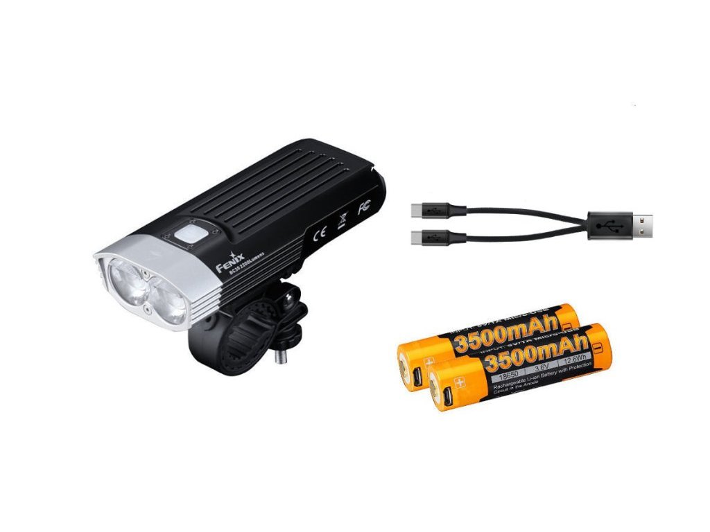 Výhodná sada světla na kolo Fenix BC30 V2.0, dvou nabíjecích USB Li-ion akumulátorů Fenix 18650 3500 mAh a dvojitého micro-USB kabelu pro pohodlné nabíjení. Upozornění: při nabíjení USB akumulátorů kabelem přímo v bateriovém držáku svítilny je nutné jeden z nich vyndat, jinak se bude nabíjet pouze jeden z akumulátorů.