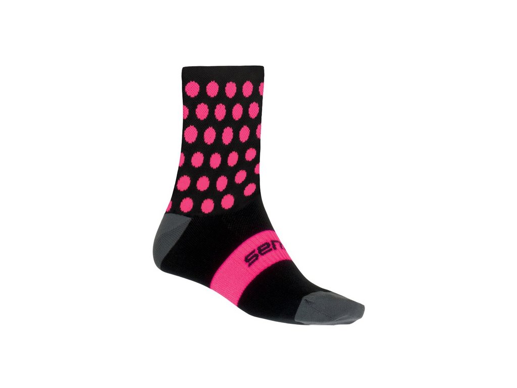 Cyklistické ponožky Race Evolution s designem Dots jsou lehké letní ponožky. Na spodní části chodidla mají tyto ponožky dvouvrstvý náplet. Nárt je síťovaný pro snadnější ventilaci vlhkosti. Pata a špička je speciálním tkaním zesílena na vyšší odolnost proti opotřebení. Tyto ponožky ocení především cyklisté a běžci.