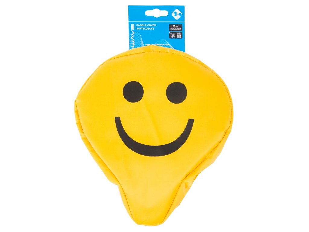Potah sedla City Fashion: Rozměry: 250 x 230 mm Materiál: polyester Vložka pěnová: 10 mm Potah obsahuje utahovací šňůrku se zarážkou Balení: karta M-Wave Barva: žlutá se smajlíkem