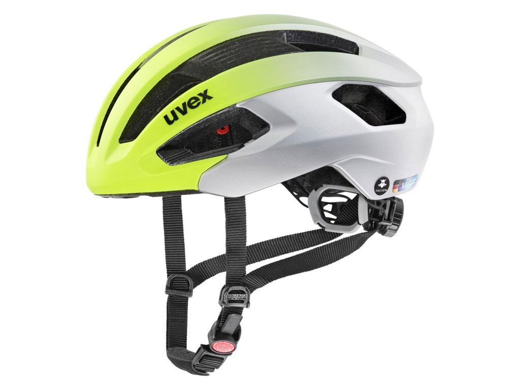 Aby bylo možné nabídnout lepší ochranu silničním cyklistům mimo rušné silnice, má Uvex rise cc Tocsen inteligentní nárazový senzor integrovaný do kolečka anatomického nastavení velikosti. Senzor je připojen k chytrému telefonu uživatele přes Bluetooth. Pokud jezdci po nehodě nereagují, systém Tocsen automaticky spustí tísňové volání a předá údaje o poloze GPS jejich klíčovým osobním kontaktům. Kromě toho je komunita Tocsen informována o nehodě, aby se případní první pomocníci v okolí mohli rychle dostat na místo. Kromě funkce chytrého nouzového volání zapůsobí Uvex rise cc Tocsen na všechny ostatní jako vysoce výkonná plnohodnotná silniční přilba. Helma má superlehkou inmould konstrukci, sportovně štíhlý design spolu s jasnými obrysy s velkými ventilačními kanály, rychleschnoucí polstrování, odkládací místo pro brýle a výraznou zadní část pro lepší ochranu zadní části hlavy.