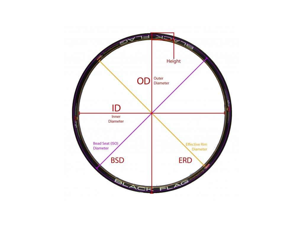 Výpočet pro rozměr 622:(hodnota ETRTO 622,3 mm (viz. na uvedeném obrázku označeno BSD). + 2x výška háku + 2x tloušťka stěny hřbetu – 2x výška ráfku (viz. na uvedeném obrázku označeno HEIGHT).