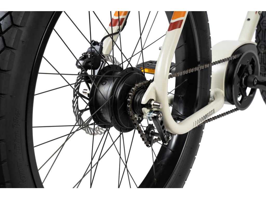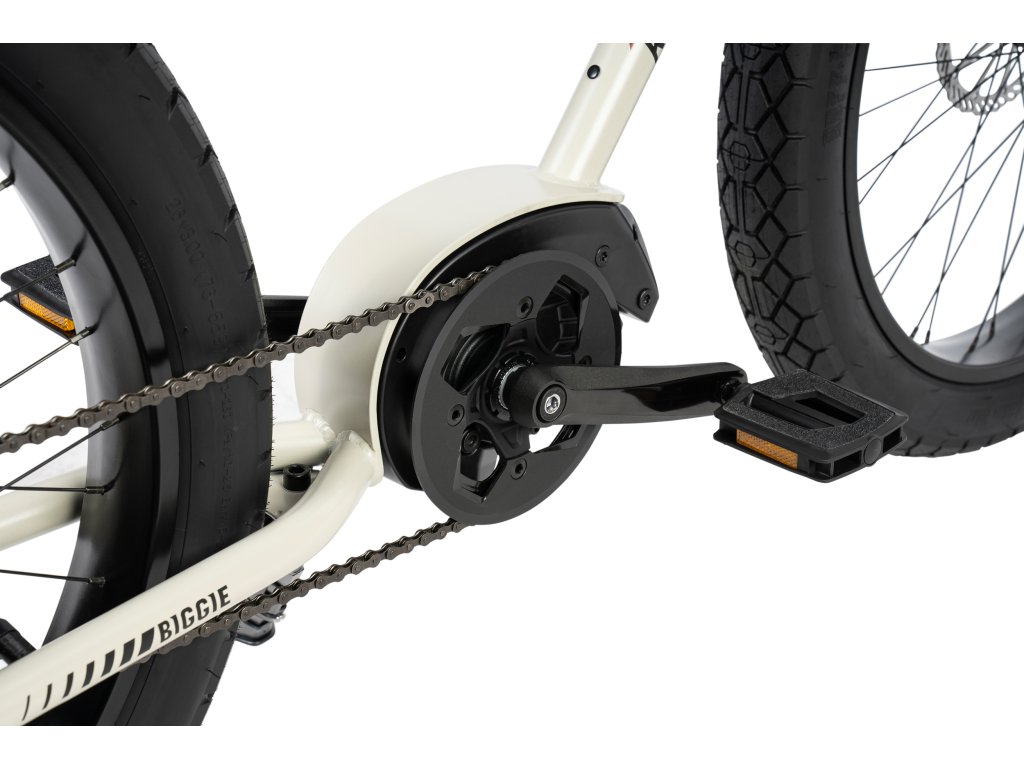 V srdci The Biggie se nachází motor Bosch Performance CX, známý svou spolehlivostí a silným výkonem. V kombinaci s baterií o kapacitě 500 Wh tento systém zajišťuje dostatek energie a dojezdu pro zvládnutí každodenních cest i víkendových dobrodružství.