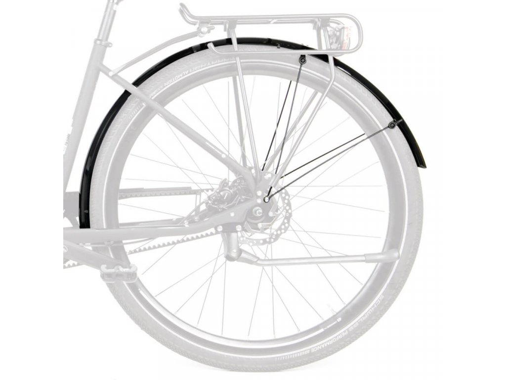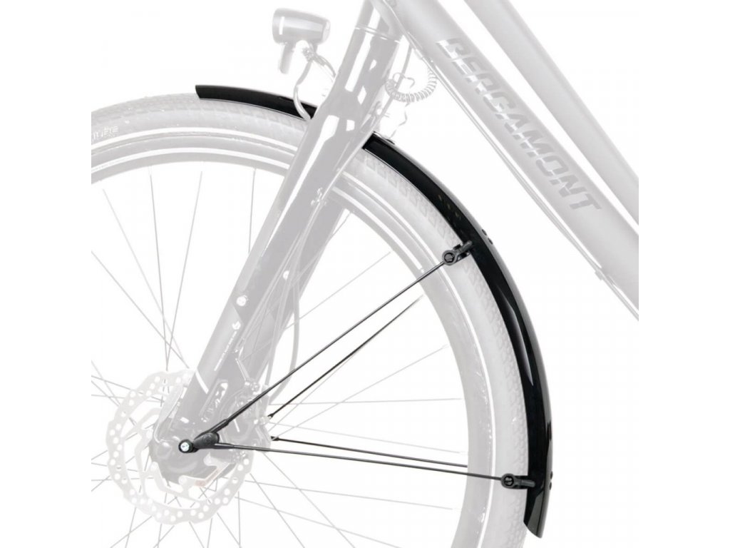 Díky pružné sendvičové konstrukci, v níž jsou ultrajemné hliníkové proužky zapuštěny do plastové vrstvy, jsou blatníky mimořádně robustní, tuhé a odolné proti korozi. Bezpečnostní systém ASR zajišťuje odpojení blatníků v případě, že se mezi paprsky zachytí větve. Pevné můstky a V-vzpěry zajišťují rychlou montáž s mnoha možnostmi nastavení. Součástí je sada vzpěr, posuvný můstek a montážní materiál.